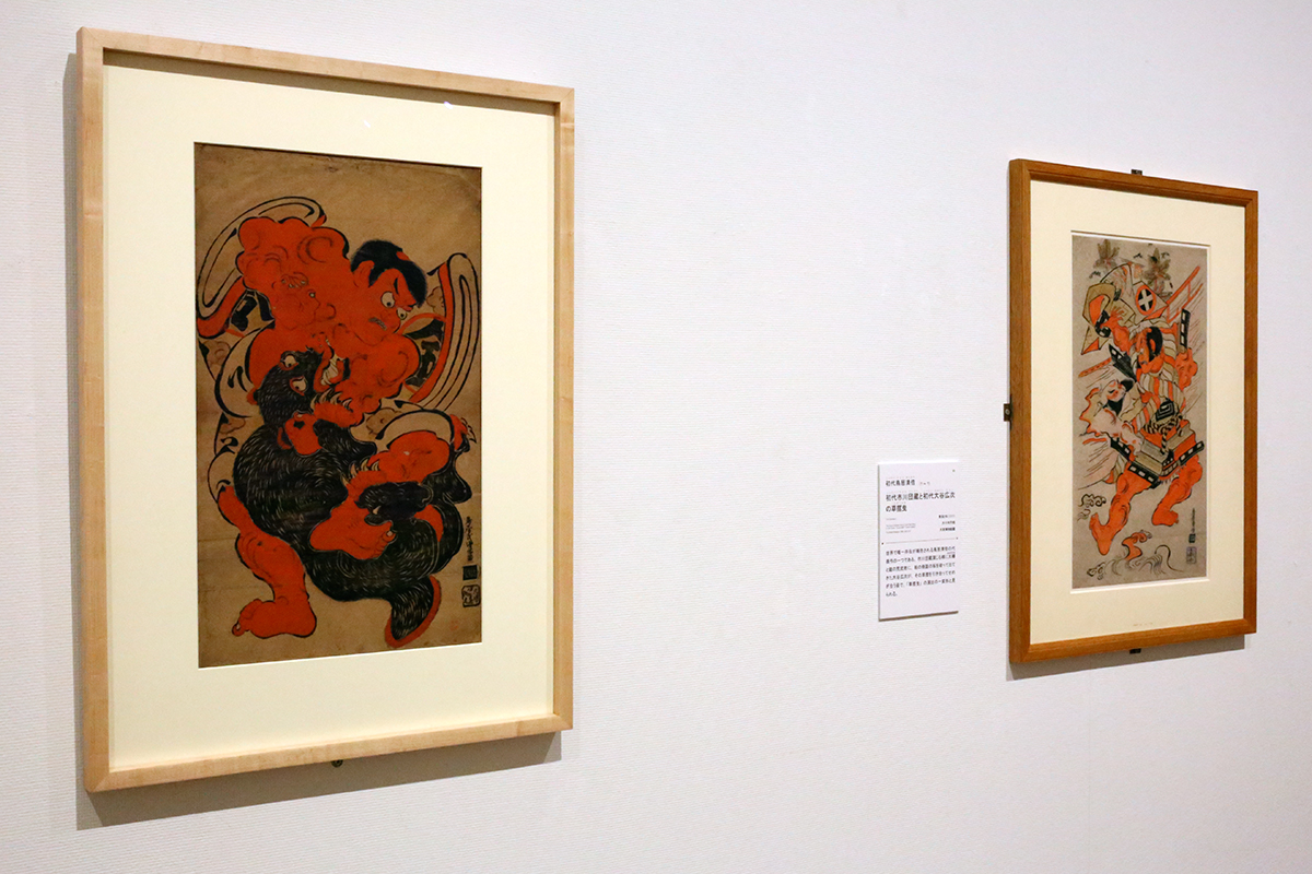 (左から)初代鳥居清倍《金太郎と熊》ホノルル美術館蔵 / 初代鳥居清倍《初代市川団蔵と初代大谷広次の草摺曳》大英博物館蔵
