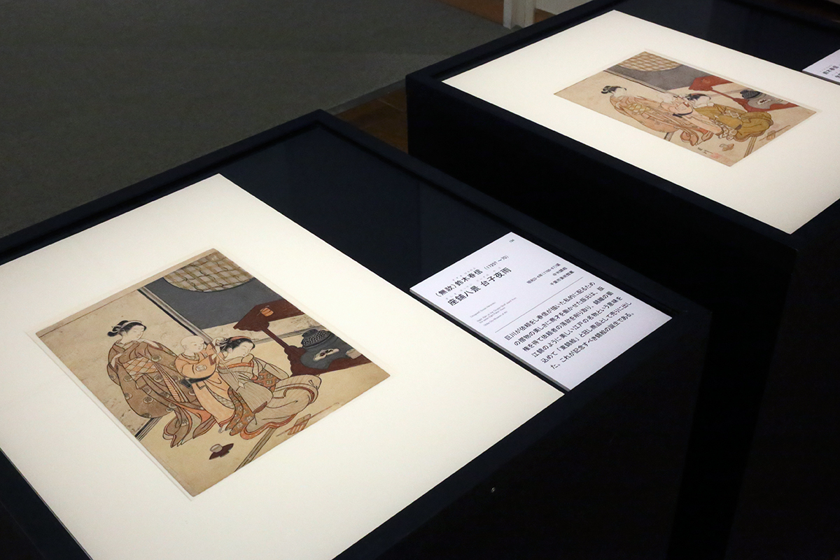 (左手前から)(無款)鈴木春信《座鋪八景 台子夜雨》千葉市美術館蔵 / 鈴木春信《座鋪八景 台子夜雨》千葉市美術館蔵