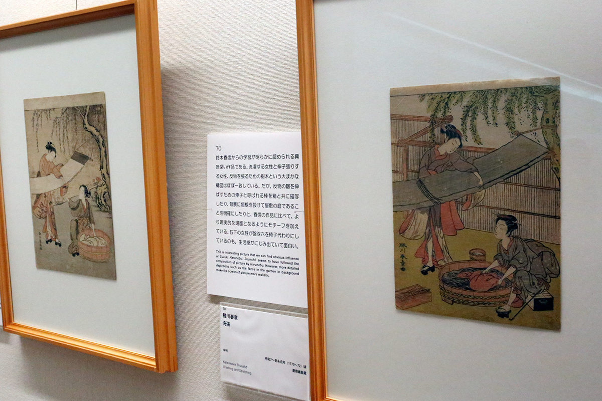 (左から)鈴木春信《洗張》太田記念美術館 / 勝川春章《洗張》慶應義塾