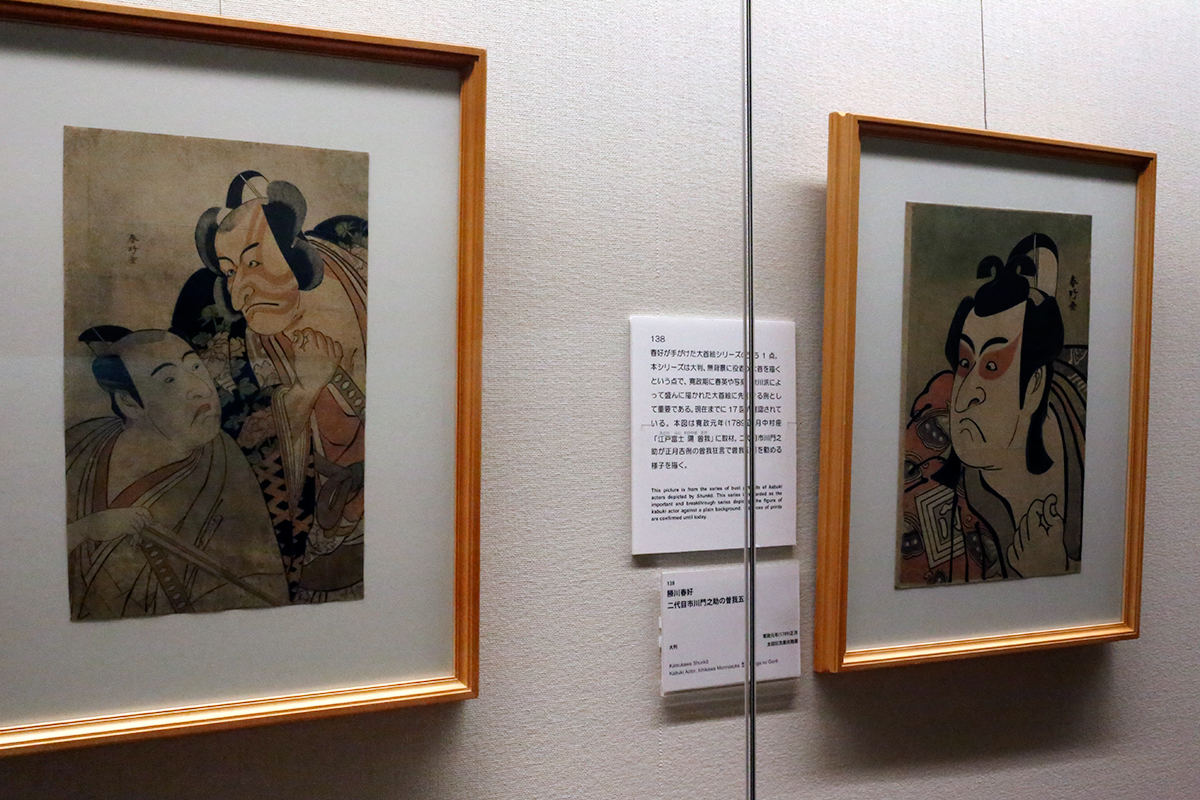 (左から)勝川春好《五代目市川団十郎の股野の五郎景久 三代目沢村宋十郎の河津の三郎祐安》 / 勝川春好《二代目市川門之助の曽我五郎》太田記念美術館