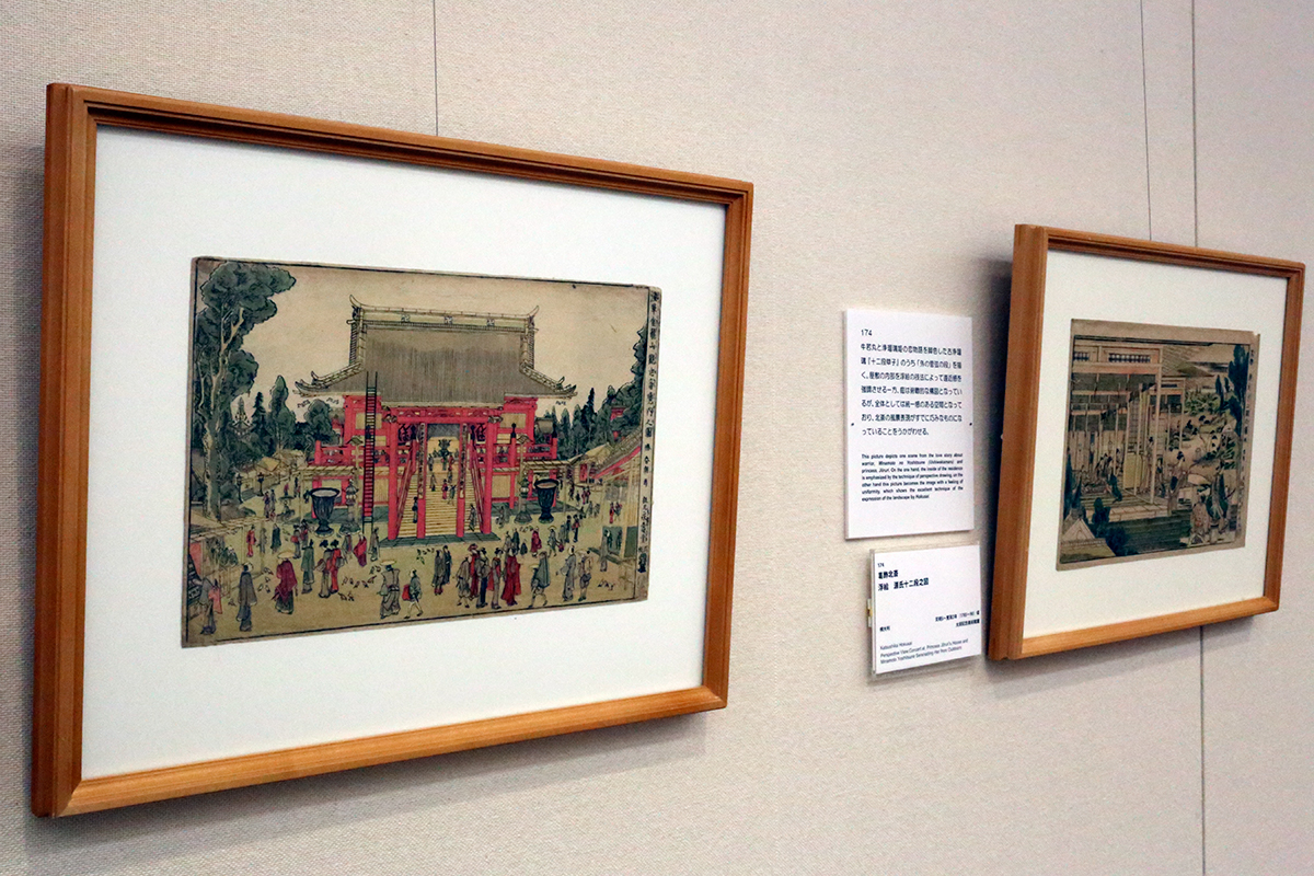(左から)葛飾北斎《浅草金龍山観世音境内之図》太田記念美術館 / 葛飾北斎《浮絵 源氏十二段之図》太田記念美術館