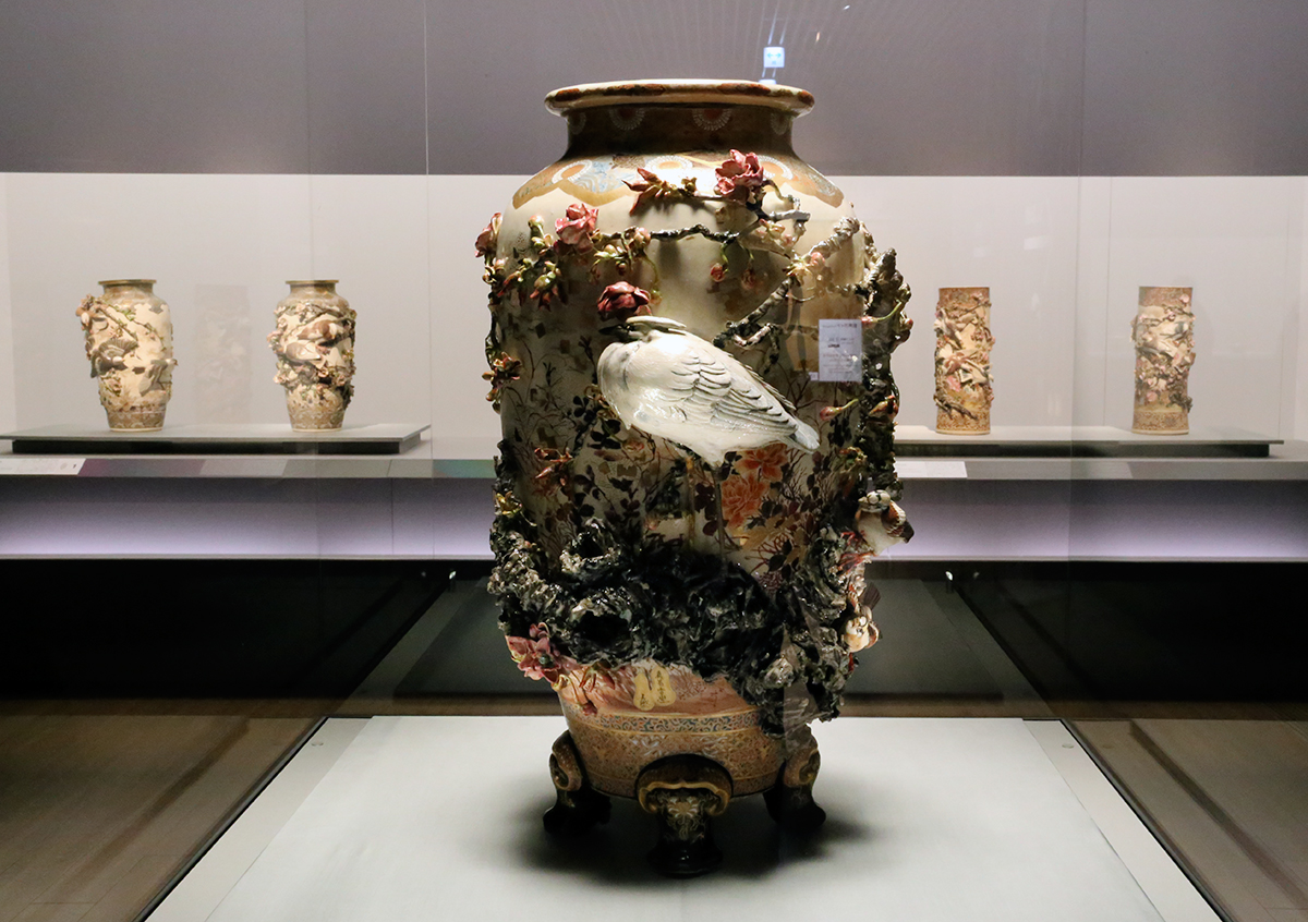 (手前)《高浮彫桜ニ鷺大花瓶》田邊哲人コレクション