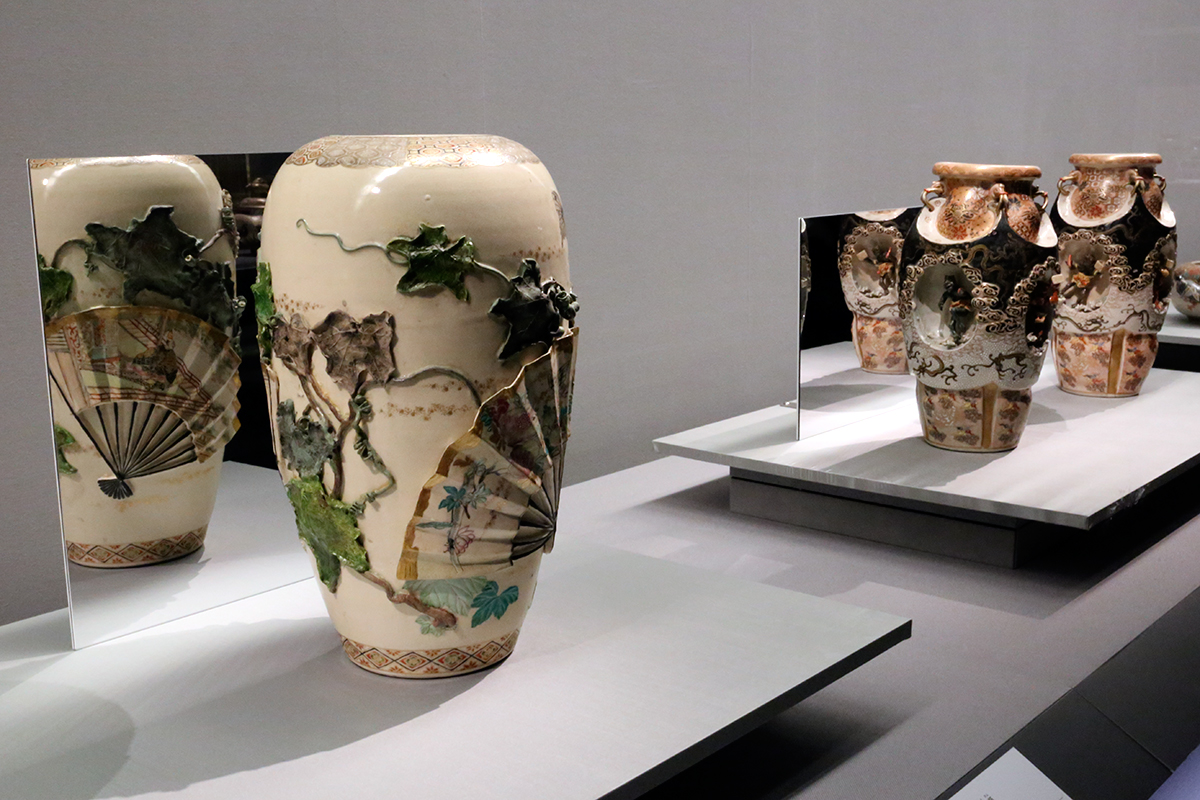 (左から)《高浮彫蔦ニ扇花瓶》田邊哲人コレクション / 《高浮彫魁星花瓶》田邊哲人コレクション(神奈川県立歴史博物館寄託)