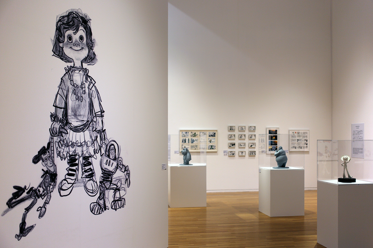 ここでは最終的な映像に至るまでの工程が一覧できるように、順を追って解説。モニターではピクサーのアーティストによるインタビュー映像も紹介されていますので、ファンはもちろんの事、映像クリエイターを目指す方は多いに刺激を受けると思います。