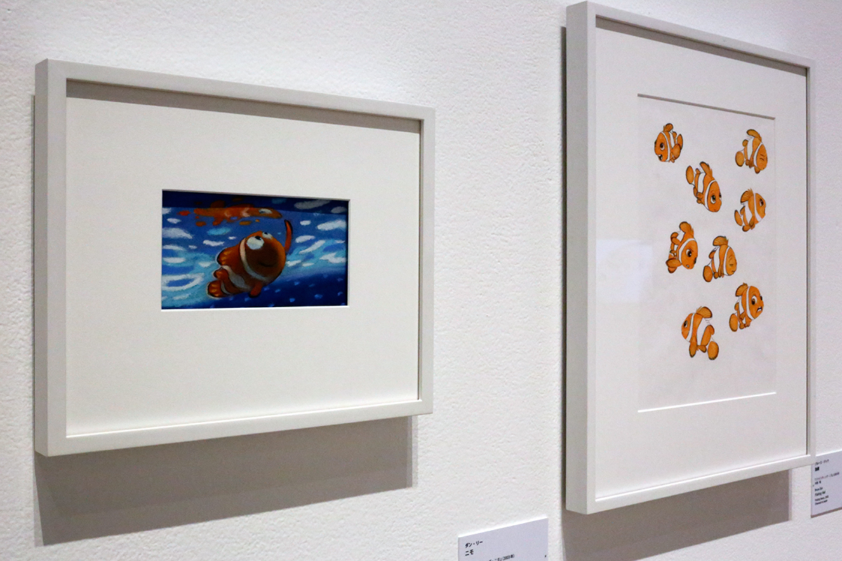 (左から)ラルフ・エッグルストン《シークエンスのパステル画:探検》 / ダン・リー《ニモ》 ともに「ファインディング・ニモ」2003年