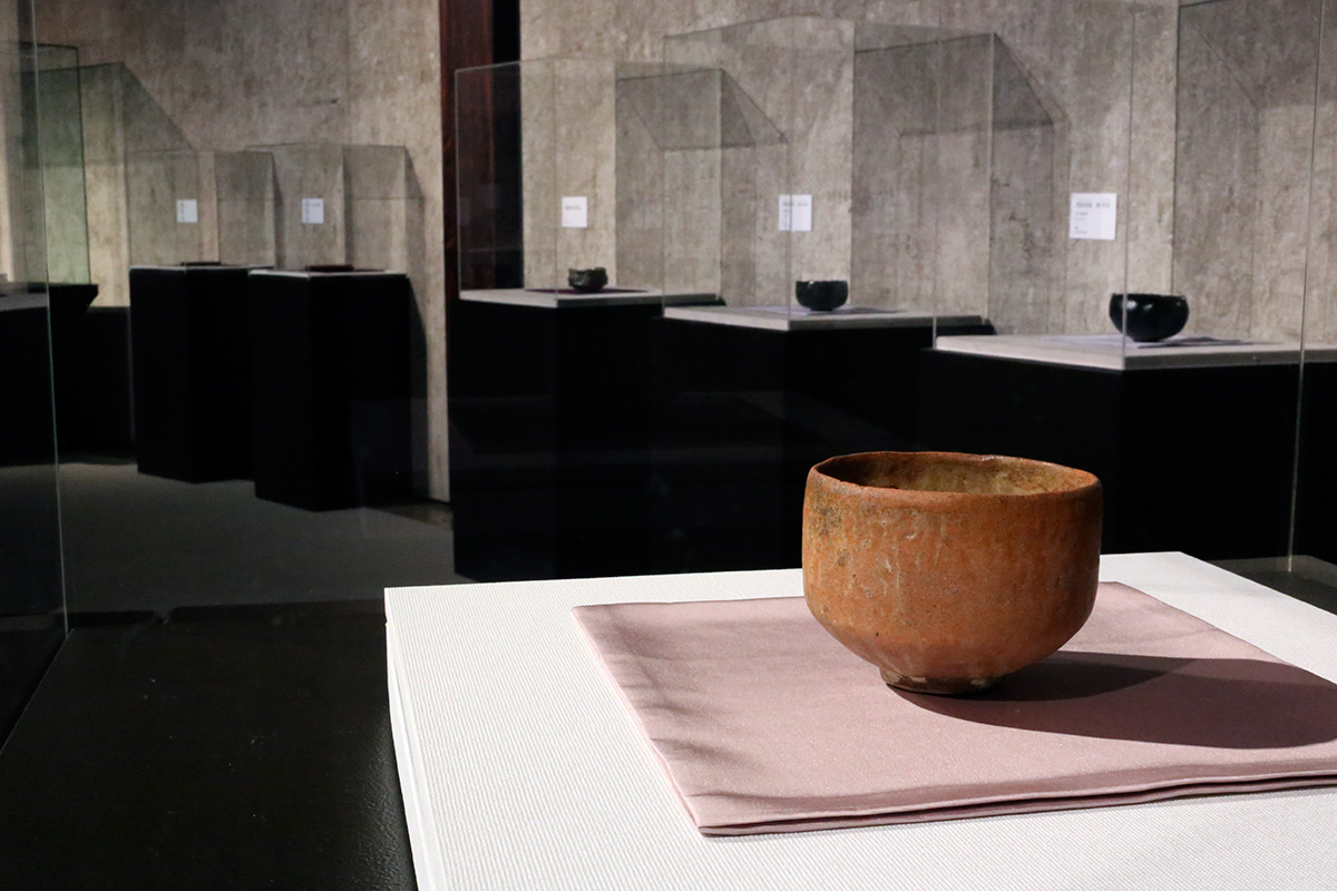 (右手前)重要文化財 長次郎《赤楽茶碗 銘 無一物(中興名物)》