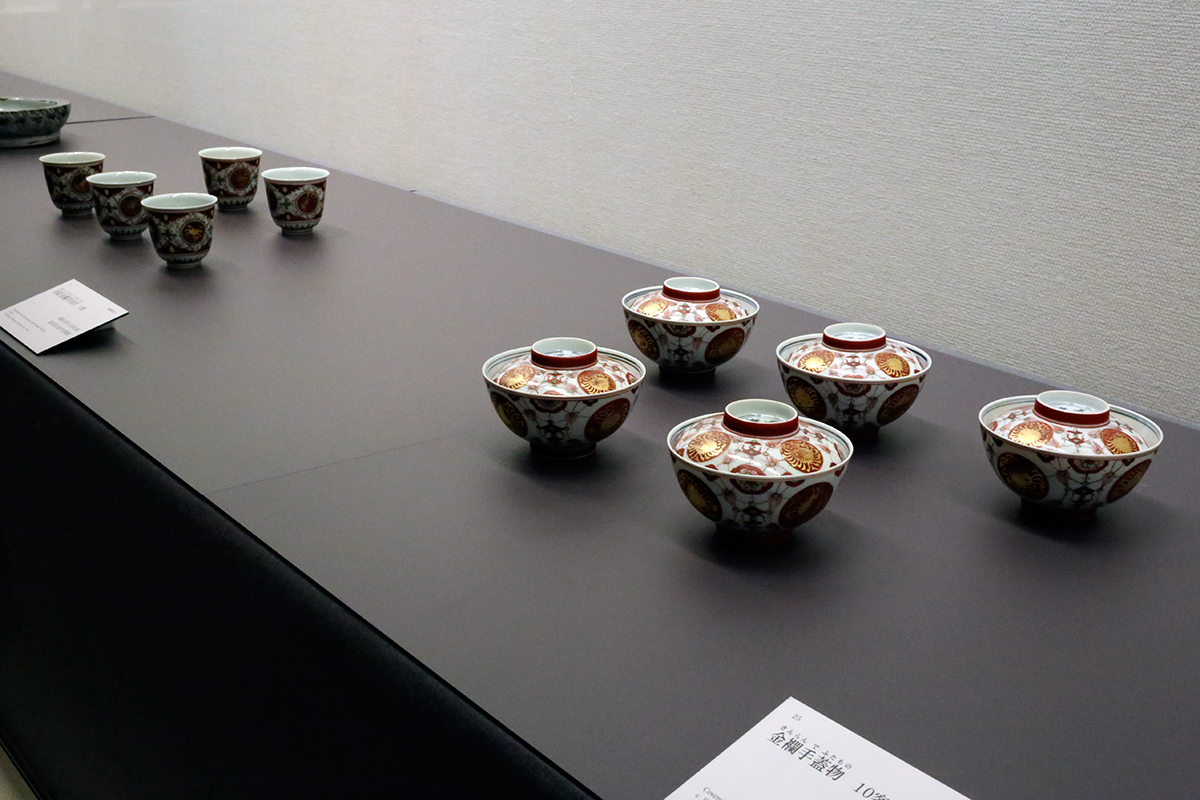 (左から)《赤絵金欄手向付》5客 昭和13年(1938)頃 東京国立近代美術館 / 《金襴手蓋物》10客 昭和15年(1940)頃 足立美術館