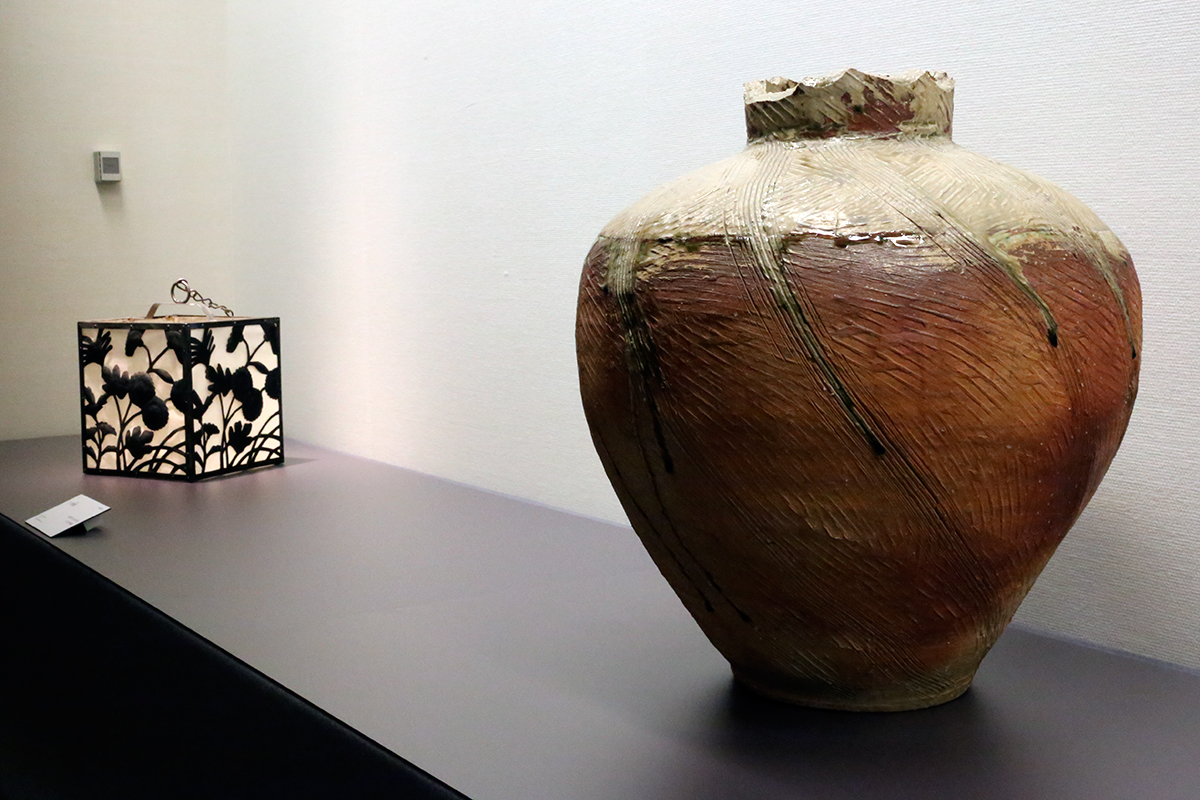 (左から)《つり燈籠》昭和5年(1930)頃 足立美術館 / 《信楽灰被大壺》昭和32年(1957) 神奈川県立近代美術館