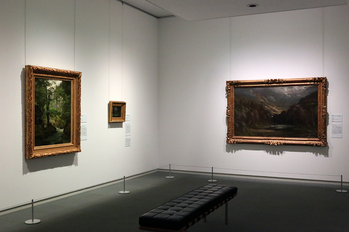 エミール・イーゼンバール《アルシエの泉》1905年頃 個人蔵 / アドルフ・フェリックス・カルス《オンフルールの果樹園》1878年 個人蔵 / ギュスターヴ・ドレ《嵐の後、スコットランドの急流》1875年‐1878年 個人蔵