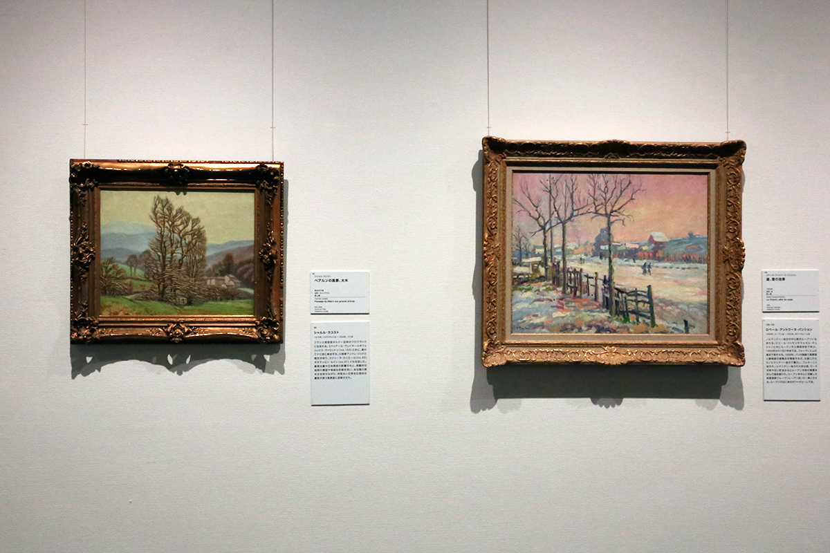 シャルル・ラコスト《ベアルンの風景、大木》制作年不詳 個人蔵 / ロベール・アントワーヌ・パンション《道、雪の効果》1905年 個人蔵
