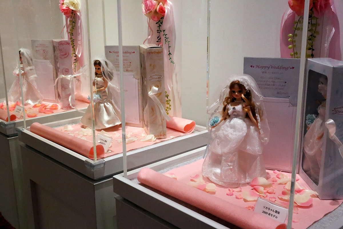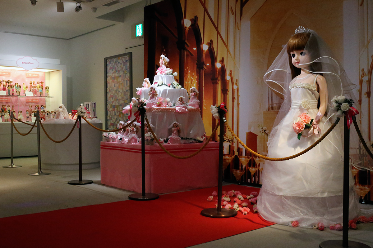 ウエディングドレスを着た等身大リカちゃんも展示