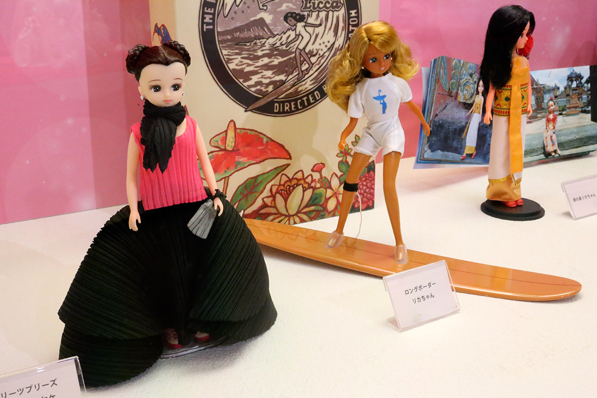 左から、プリーツプリーズ イッセイミヤケ リカちゃん、ロングボーダー リカちゃん、南の島リカちゃん