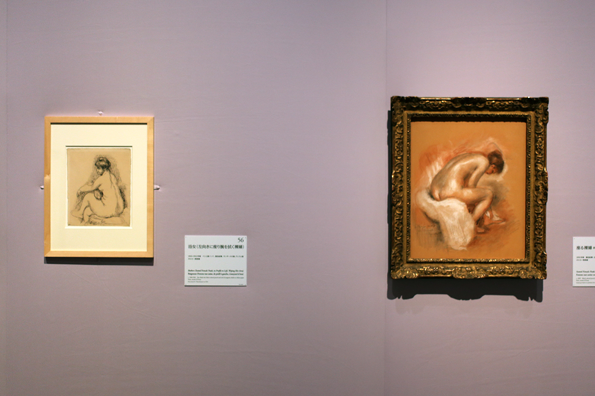 (左から)《浴女(左向きに座り腕を拭く裸婦)》1900-1902年頃 オルセー美術館 / 《座る裸婦》あるいは《身づくろい》1890年頃 オルセー美術館
