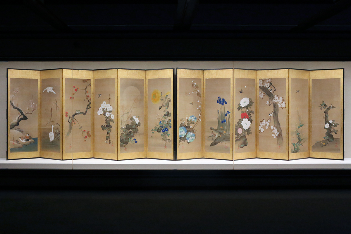 《四季花木図屏風》鈴木其一 江戸時代