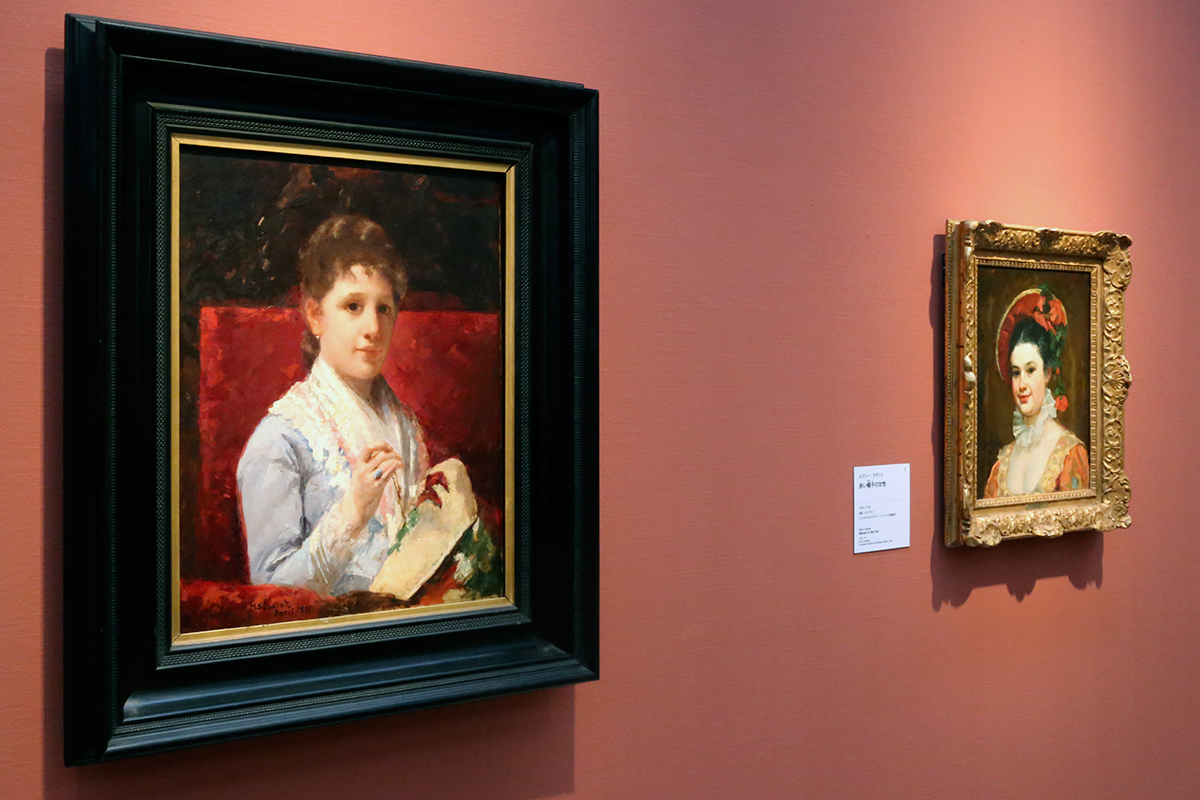 (左から)メアリー・カサット《刺繍するメアリー・エリソン》1877年 フィラデルフィア美術館蔵 / メアリー・カサット《赤い帽子の女性》1874/75年 ジェラルド&キャサリン・ピーターズ夫妻協力