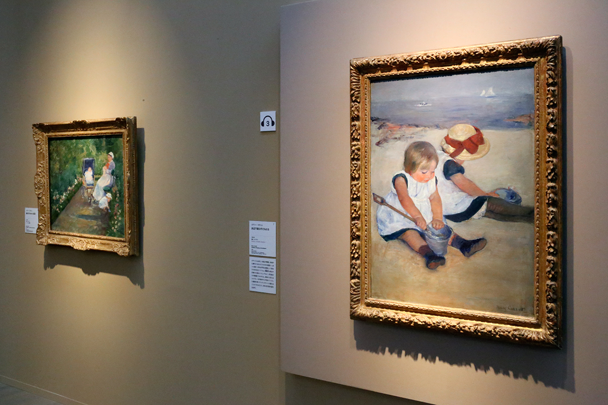 (左から)メアリー・カサット《庭の子どもたち(乳母)》1878年 ヒューストン美術館蔵 / メアリー・カサット《浜辺で遊ぶ子どもたち》1884年 ワシントン・ナショナル・ギャラリー蔵