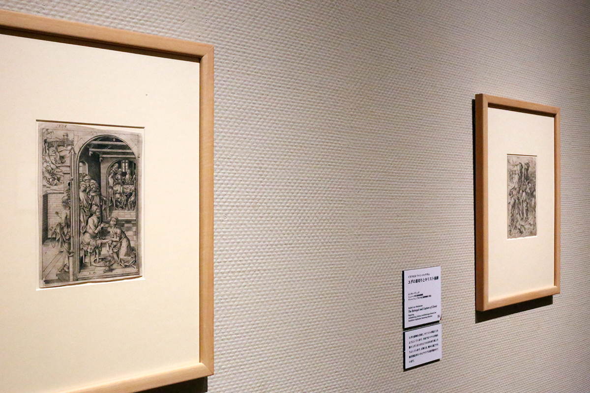 (左から)イスラエル・ファン・メッケネム《弟子たちの足を洗うキリスト(〈受難伝〉より)》 エングレーヴィング ミュンヘン州立版画素描館、アシャッフェンブルク市立城博物館に寄託 ©Staatliche Graphische Sammlung München / イスラエル・ファン・メッケネム《ユダの裏切りとキリスト捕縛(〈受難伝〉より)》 エングレーヴィング ミュンヘン州立版画素描館、アシャッフェンブルク市立城博物館に寄託 ©Staatliche Graphische Sammlung München