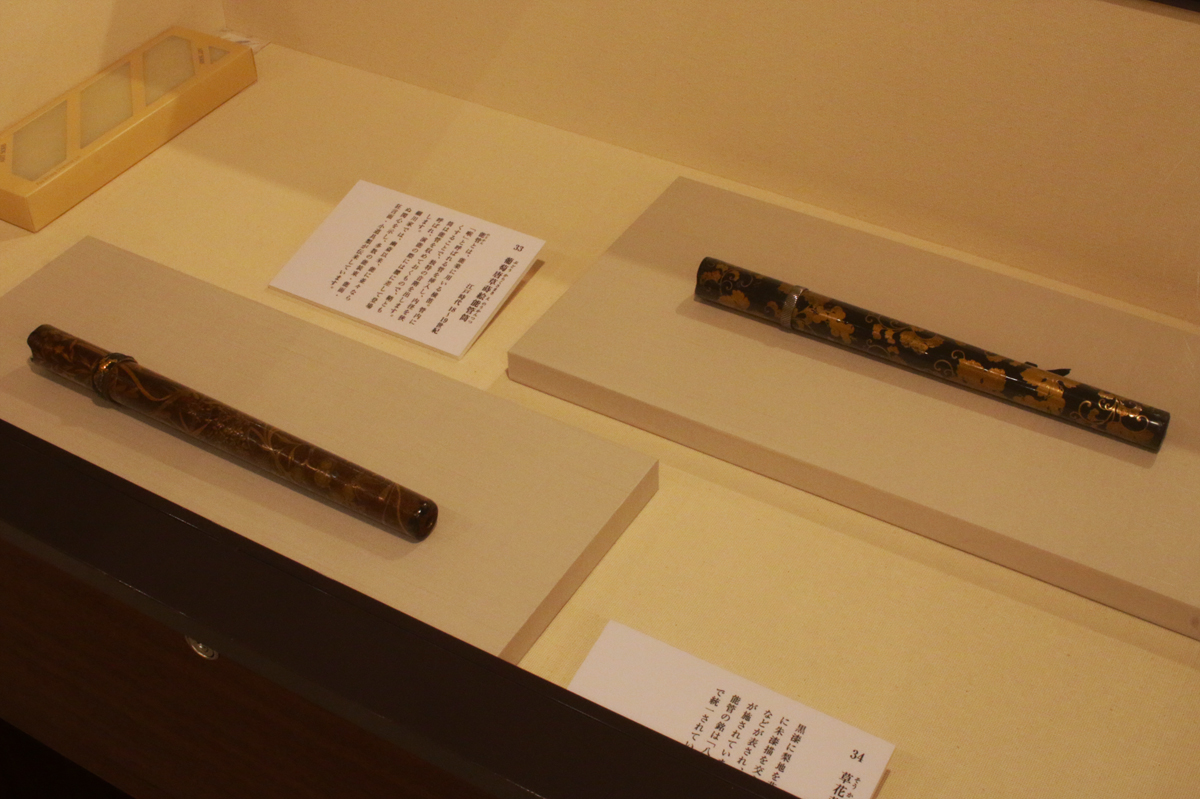 左から)《草花蒔絵能管筒》、《葡萄唐草蒔絵能管筒》ともに江戸時代(18~19世紀)