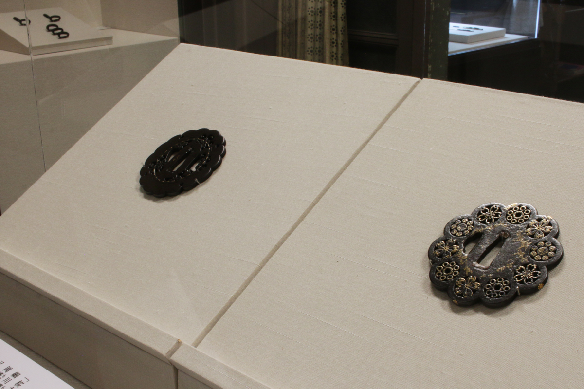 左から)《霞桜文透鐔 銘 又七》、《桜九曜紋透鐔 銘 又七》ともに林又七 江戸時代(17世紀)