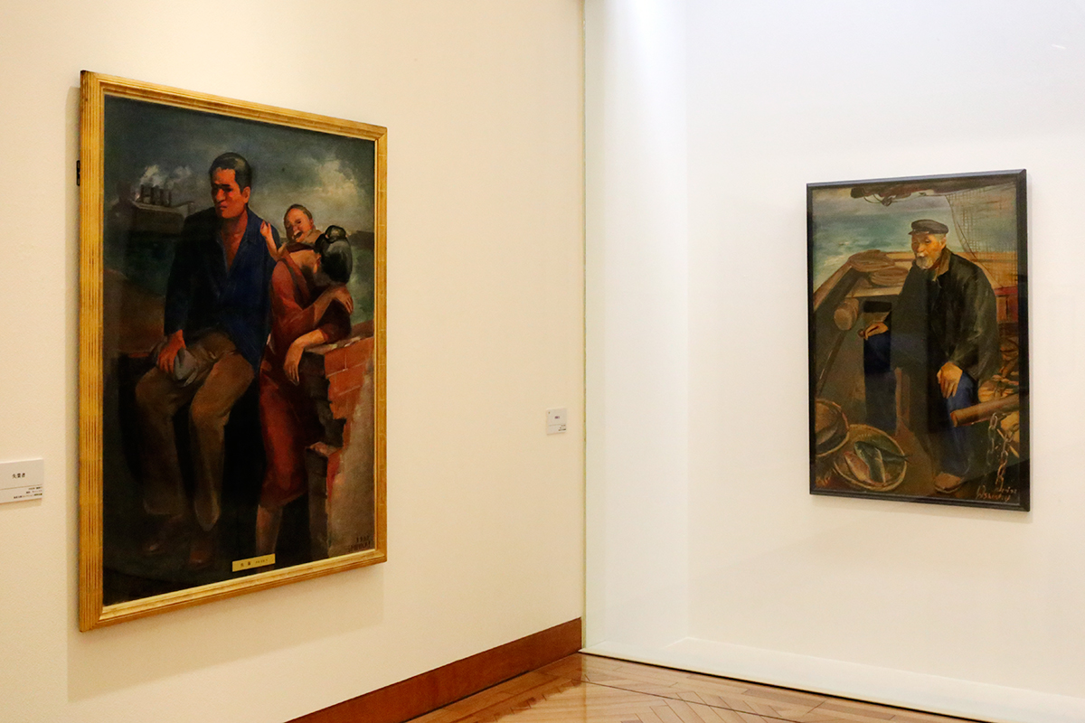 (左から)新海覚雄《失業者》1932年 福富太郎コレクション資料室蔵 / 新海覚雄《老船長》1932年 東京国立近代美術館蔵