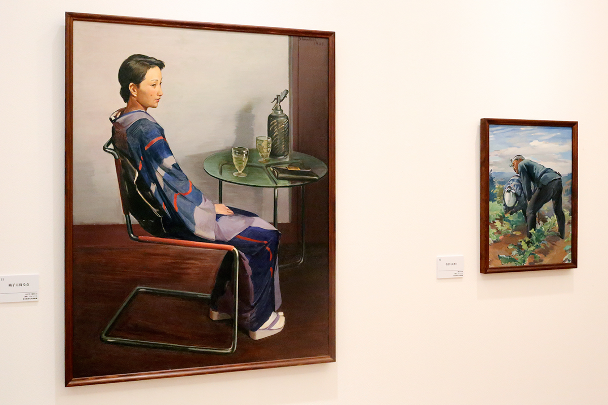 (左から)新海覚雄《椅子に座る女》1937年 東京都現代美術館蔵 / 新海覚雄《不詳(山形)》不詳 東京都現代美術館蔵
