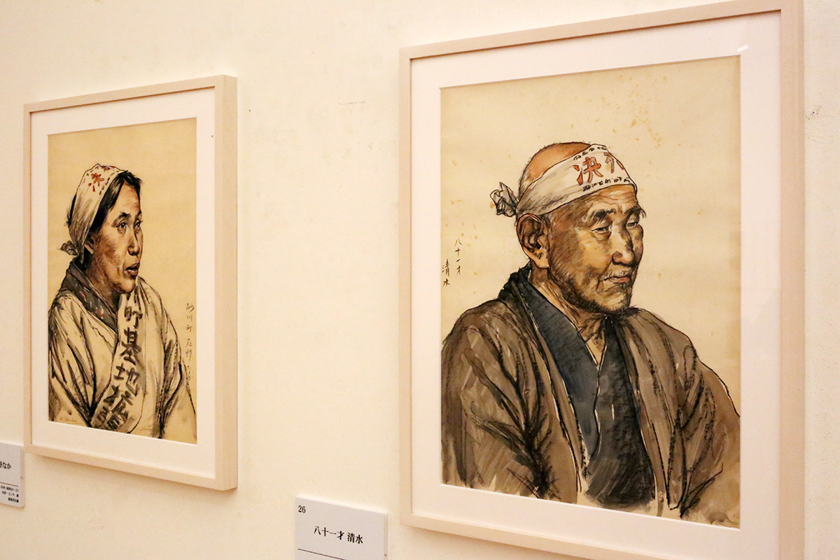 (左から)新海覚雄《砂川町 石野なか》1955-56年 新海尭氏蔵 / 新海覚雄《八十一才 清水》1955-56年 立川市歴史民俗資料館蔵