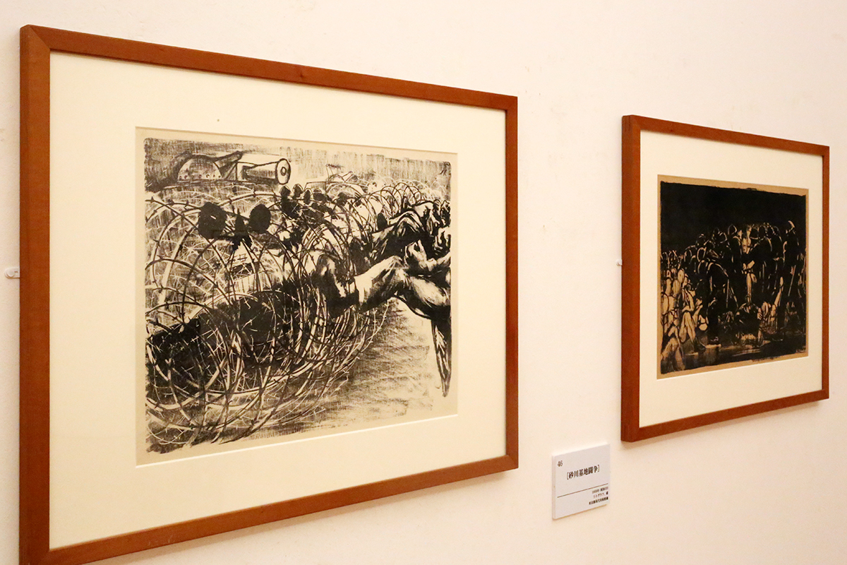 (左から)新海覚雄[砂川基地闘争]1958年 東京都現代美術館蔵 / 新海覚雄[砂川基地闘争]1958年 東京都現代美術館蔵