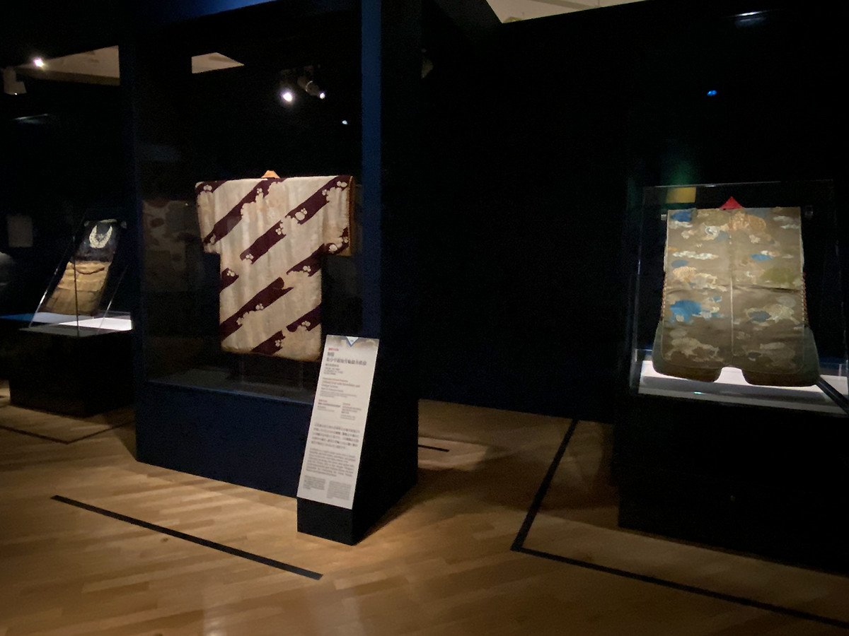 第3章は「男の美学」。冒頭には信長、秀吉、家康が着用したきものが。信長は独特のファッションセンス、秀吉はいかにもと思える豪華さ、家康のきものも、ここで展示されているのは「かぶいた」意匠です。