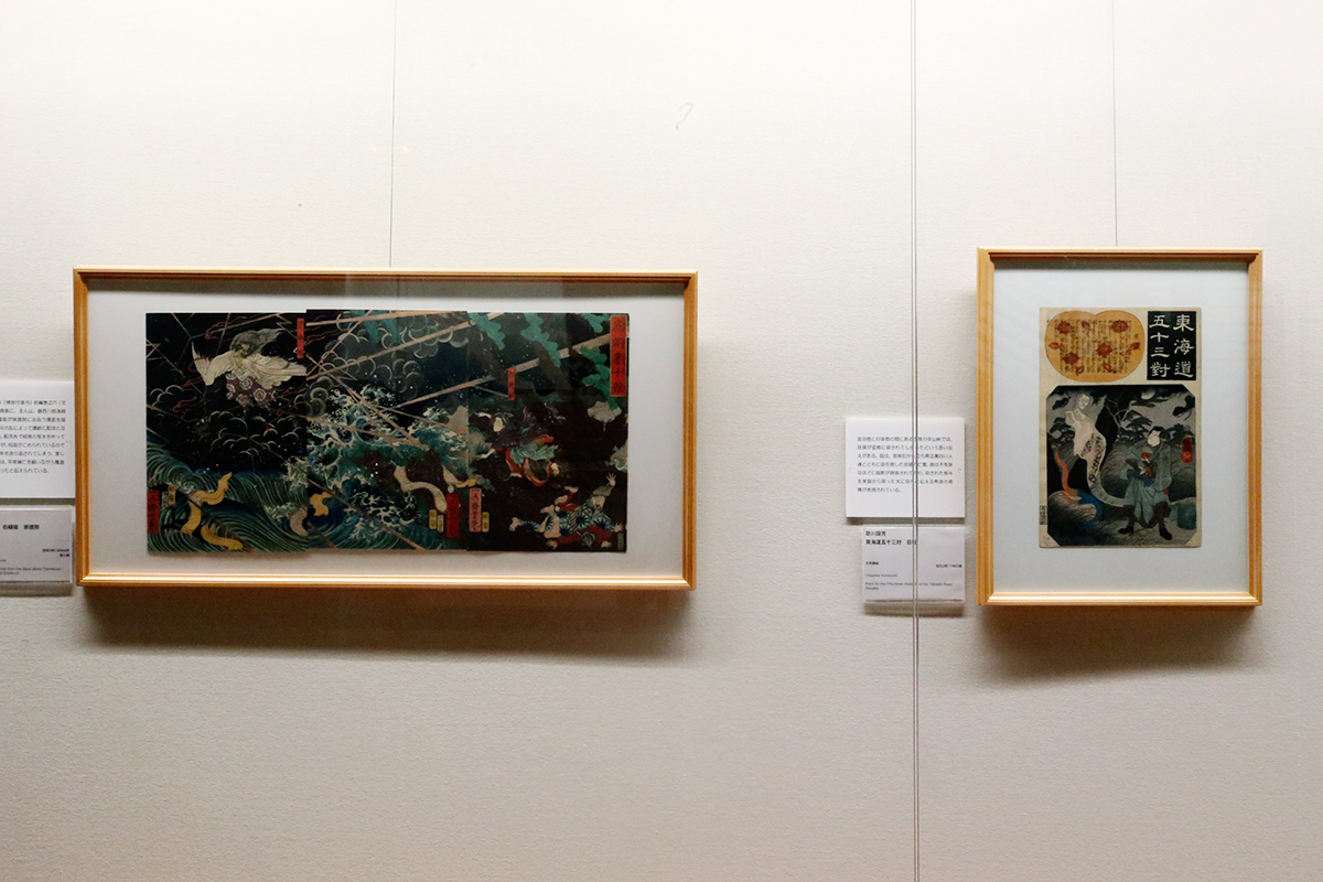 (左から)歌川芳艶《為朝誉十傑 白縫姫 崇徳院》 / 歌川国芳《東海道五十三対 日坂》