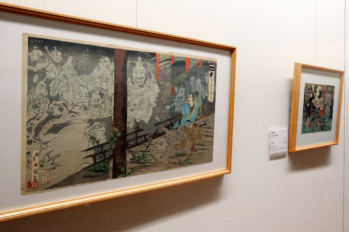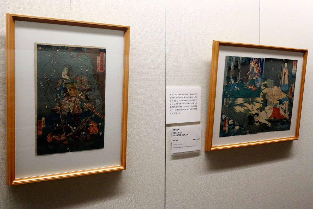 (左から)歌川国芳《本朝英雄鏡 石川藤助定友》 / 歌川国芳《風流人形之内 一ツ家の図 祐天上人》