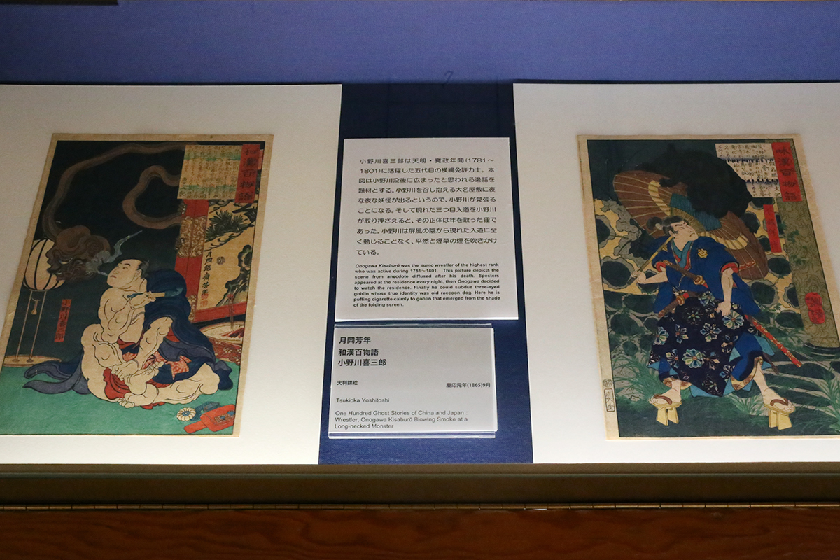 (左から)月岡芳年《和漢百物語 小野川喜三郎》 / 月岡芳年《和漢百物語 不破伴作》