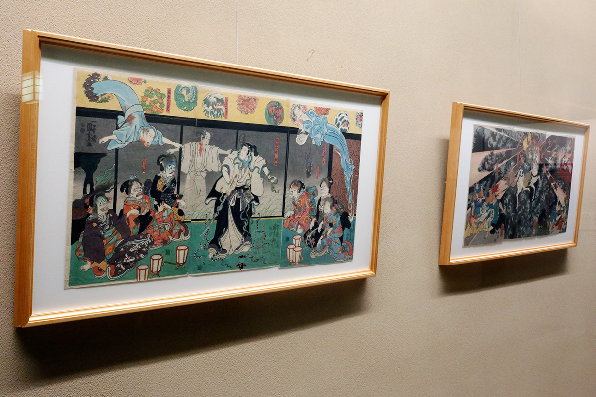(左から)歌川国芳《四代目市川小団次の於岩ぼうこん》 / 歌川国貞(三代豊国)《東海道四谷怪談》