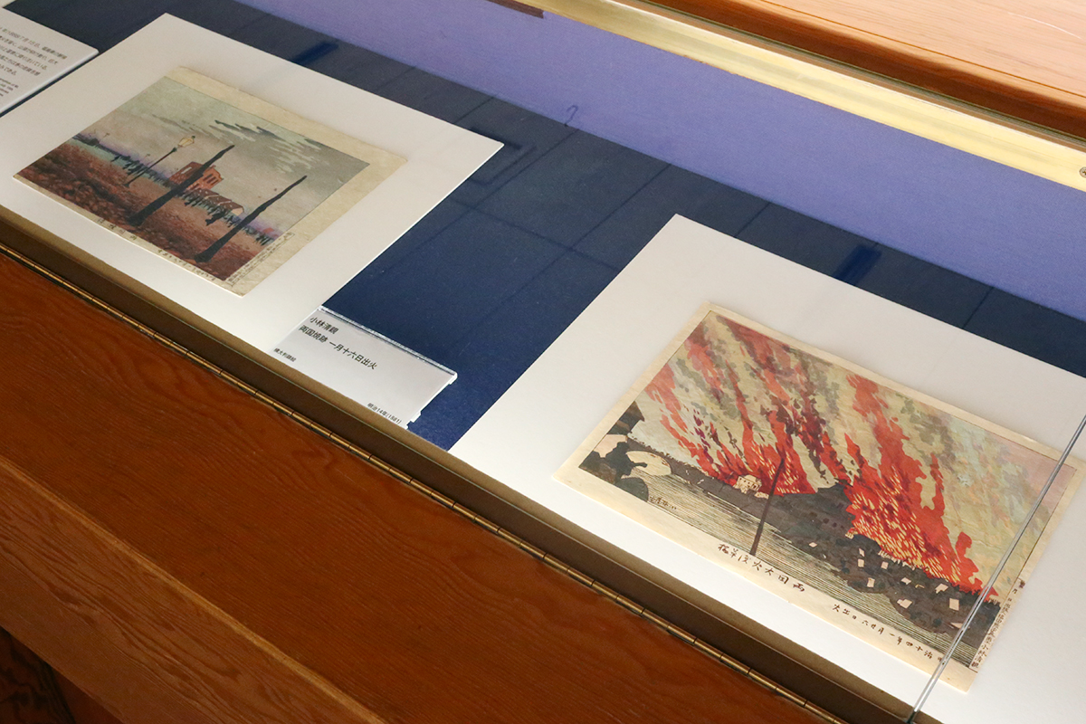 (左から)小林清親《明治十四年一月廿六日出火 両国大火浅草橋》 / 小林清親《両国焼跡 一月十六日出火》