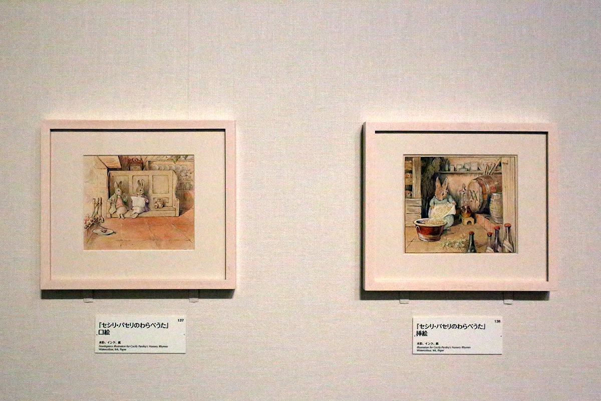 (左から)ビアトリクス・ポター《『セシリ・パセリのわらべうた』口絵》 / ビアトリクス・ポター《『セシリ・パセリのわらべうた』挿絵》