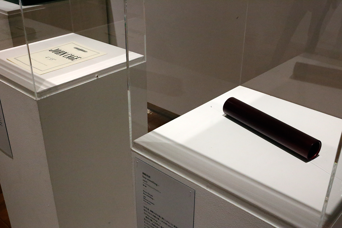 (左から)ジョン・ケージ《4'33"》1952年 / 岡崎和郎《hear something...》1966年