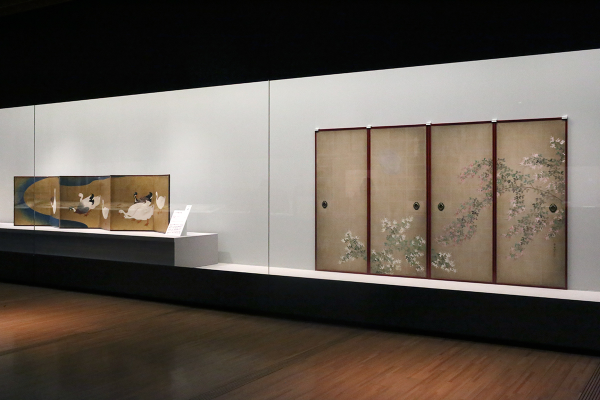 (左奥から)鈴木其一《水辺家鴨図屛風》細見美術館蔵 / 鈴木其一《萩月図襖》東京富士美術館蔵 [全て展示期間終了]
