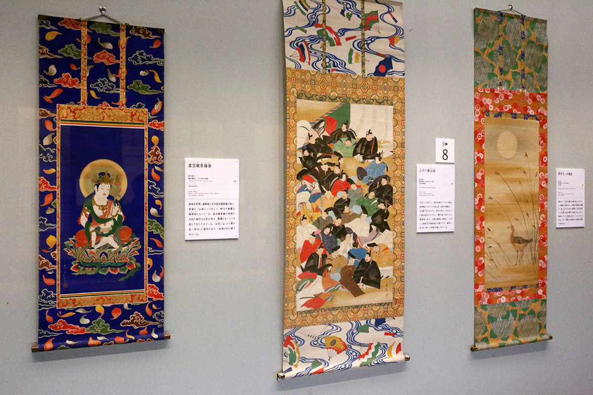 (左前から)鈴木其一《虚空蔵菩薩像》ファインバーグ・コレクション / 鈴木其一《三十六歌仙図》出光美術館蔵 / 鈴木其一《夏宵月に水鶏図》 [全て展示期間終了]
