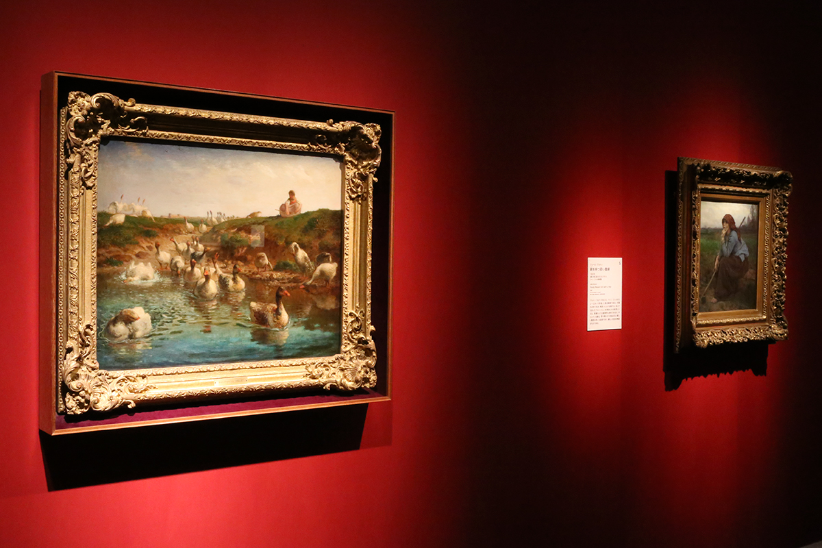 (左から)ジャン=フランソワ・ミレー《鵞鳥番の女》1866-67年 個人蔵 / ジュール・ブルトン《鍬を持つ若い農婦》ファン・ゴッホ美術館