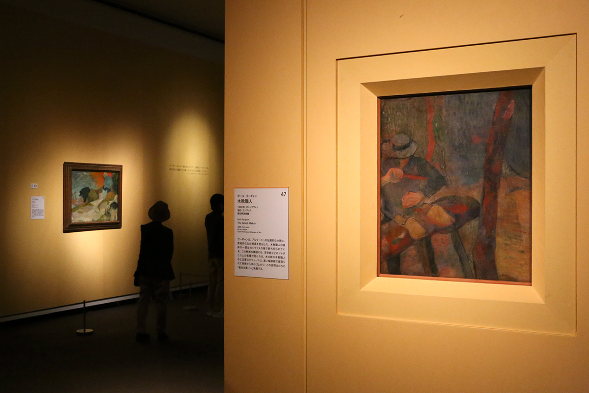 (左奥)ポール・ゴーギャン《アルルの洗濯女》188年 ビルバオ美術館 / (右手前)ポール・ゴーギャン《木靴職人》188年 愛知県美術館