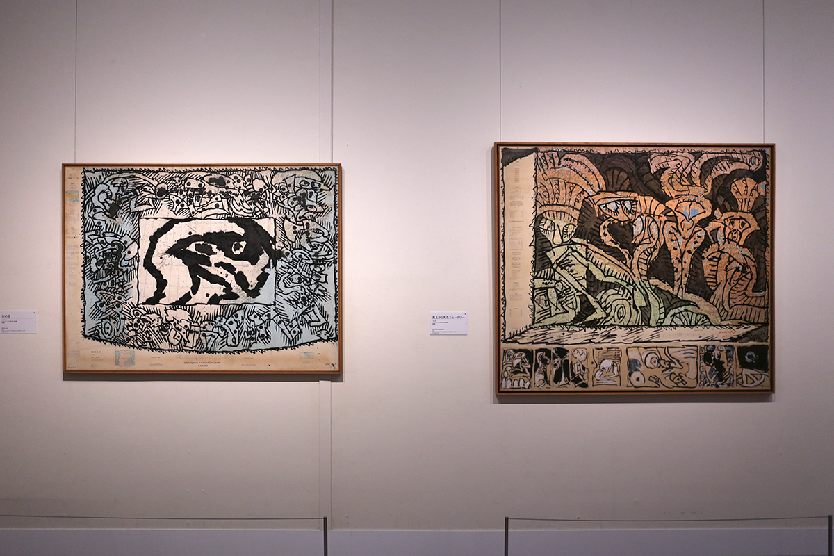 (左から)《氷の目》1982年 / 《真上から見たニューデリー》1982年 ともに作家蔵