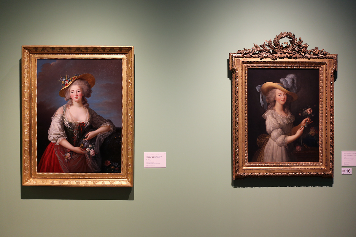 (左から)エリザベト=ルイーズ・ヴィジェ・ル・ブラン《エリザベト・フィリッピーヌ・マリー・エレーヌ、ルイ16世の妹、通称マダム・エリザベト》ヴェルサイユ宮殿美術館 / エリザベト=ルイーズ・ヴィジェ・ル・ブラン《ゴール・ドレスを着たマリー・アントワネット》ワシントン・ナショナル・ギャラリー