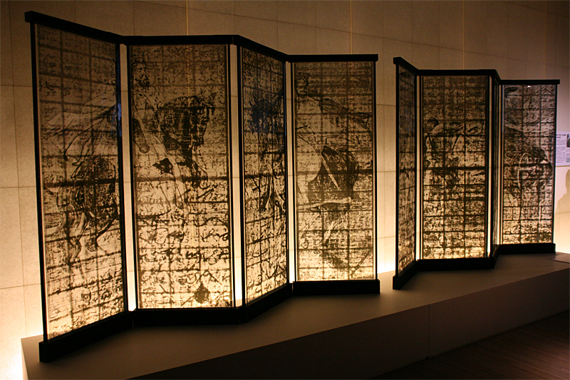 目玉の泰西王侯騎馬図屏風。写真手前は神戸市立博物館蔵、奥がサントリー美術館蔵。