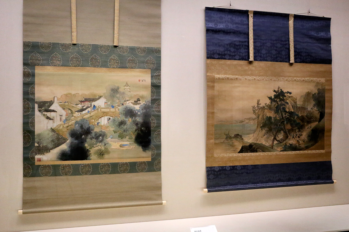 (左から)竹内栖鳳《城外風薫》 / 川端玉章《海の幸図》