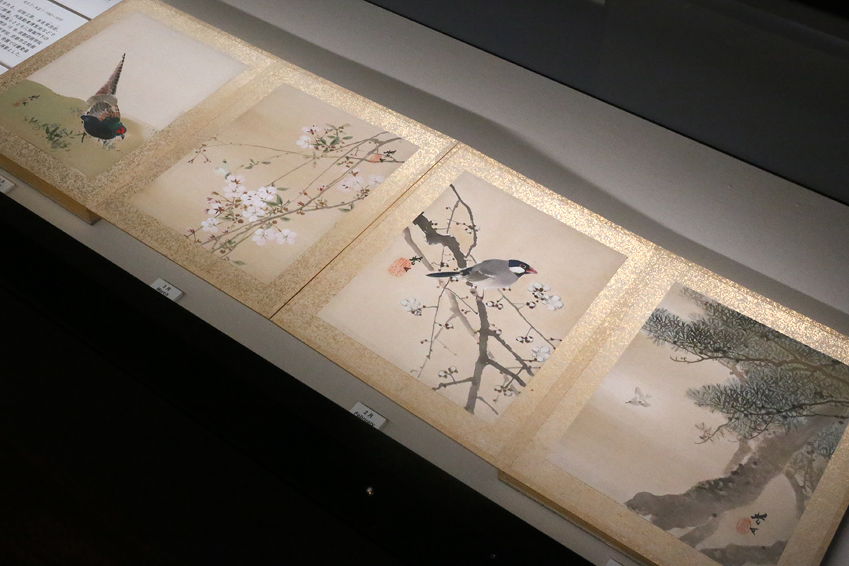 会場には松園の子で同じく文化勲章を受章した上村松篁、松園の孫で文化功労者の上村淳之の作品も展示。親・子・孫と、三代続いて日本芸術院会員です。