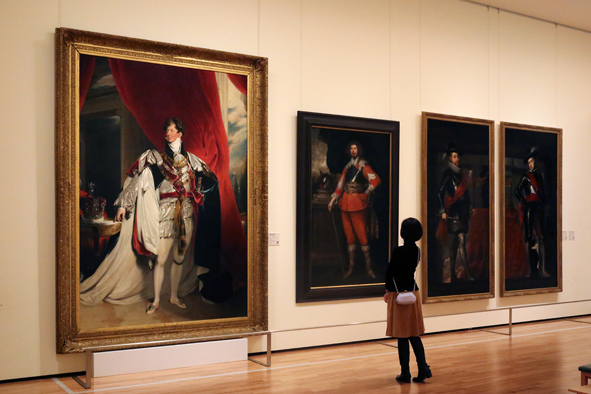 (左から)トマス・ローレンス《摂政皇太子時代のジョージ4世》 / アントニー・ヴァン・ダイクに帰属《ドーセット伯爵4世 エドワード・サックヴィルの肖像》 / カスパール・デ・クライエル《スペイン国王フェリペ3世》 / カスパール・デ・クライエル《スペイン国王フェリペ4世》