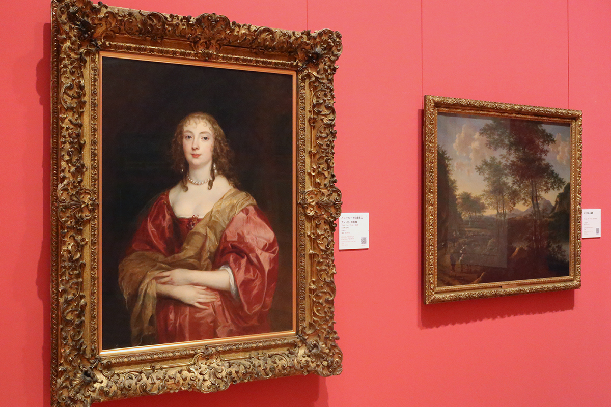 (左から)アントニー・ヴァン・ダイク《ベッドフォード伯爵夫人 アン・カーの肖像》 / ウィルム・デ・ヘゥス《木立のある風景》