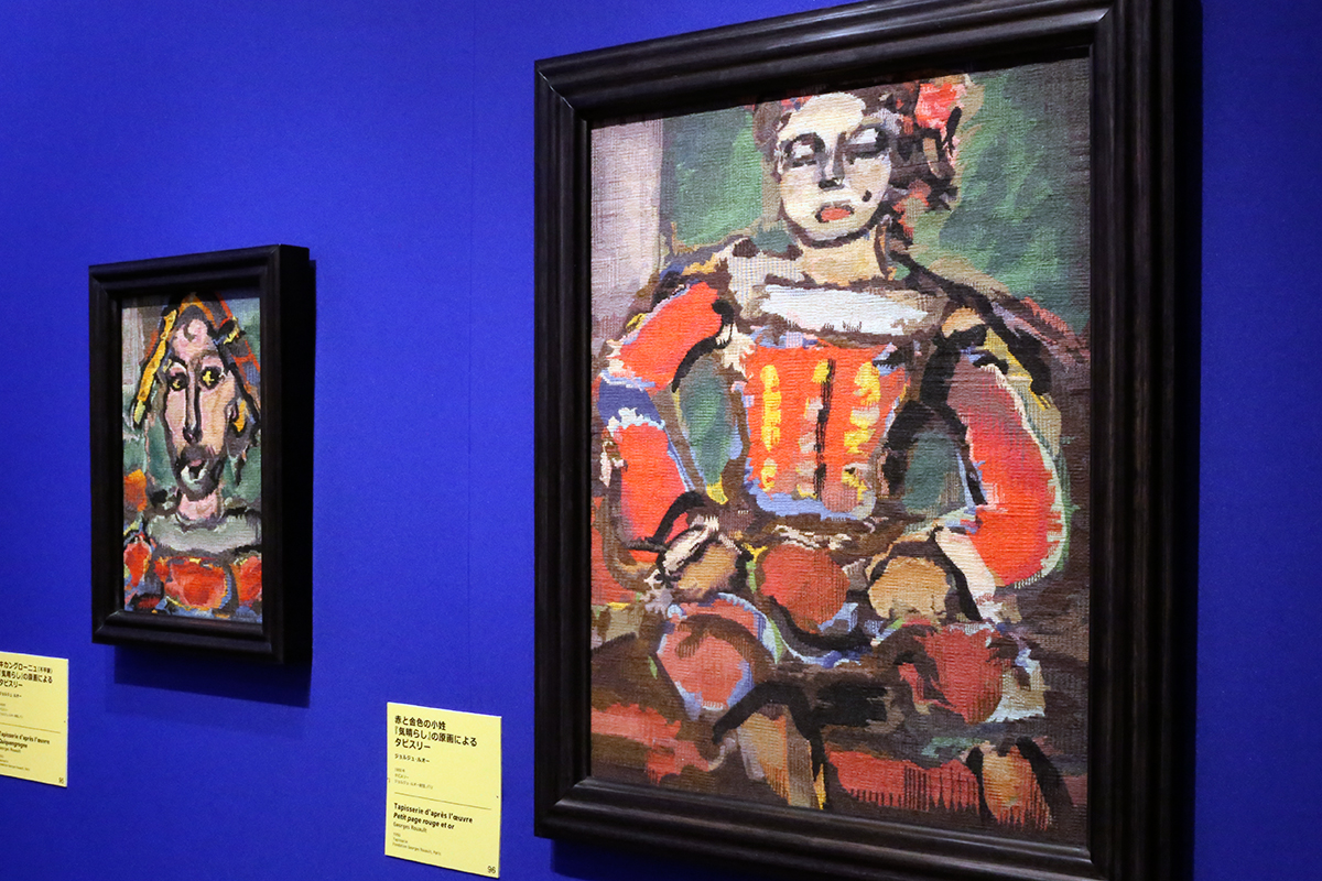 (左から)ジョルジュ・ルオー《キカングローニュ(不平家)『気晴らし』の原画によるタピストリー》ジョルジュ・ルオー財団、パリ / ジョルジュ・ルオー《赤と金色の小姓『気晴らし』の原画によるタピストリー》ジョルジュ・ルオー財団、パリ