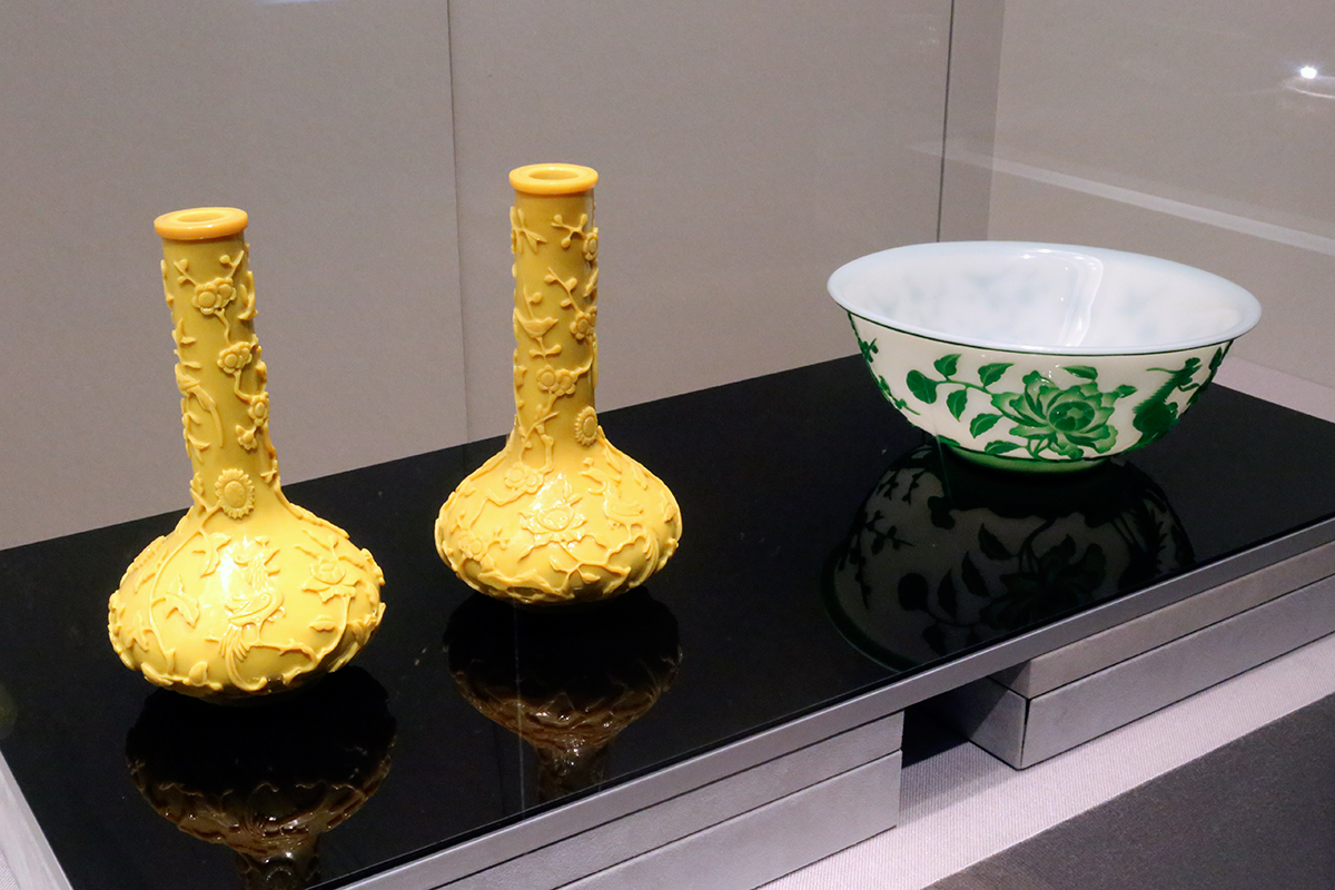 《黄色鳳凰文瓶》一対 中国 乾隆時代 18世紀 / 《白地緑色被花鳥文鉢》中国 乾隆~嘉慶時代 18~19世紀前半