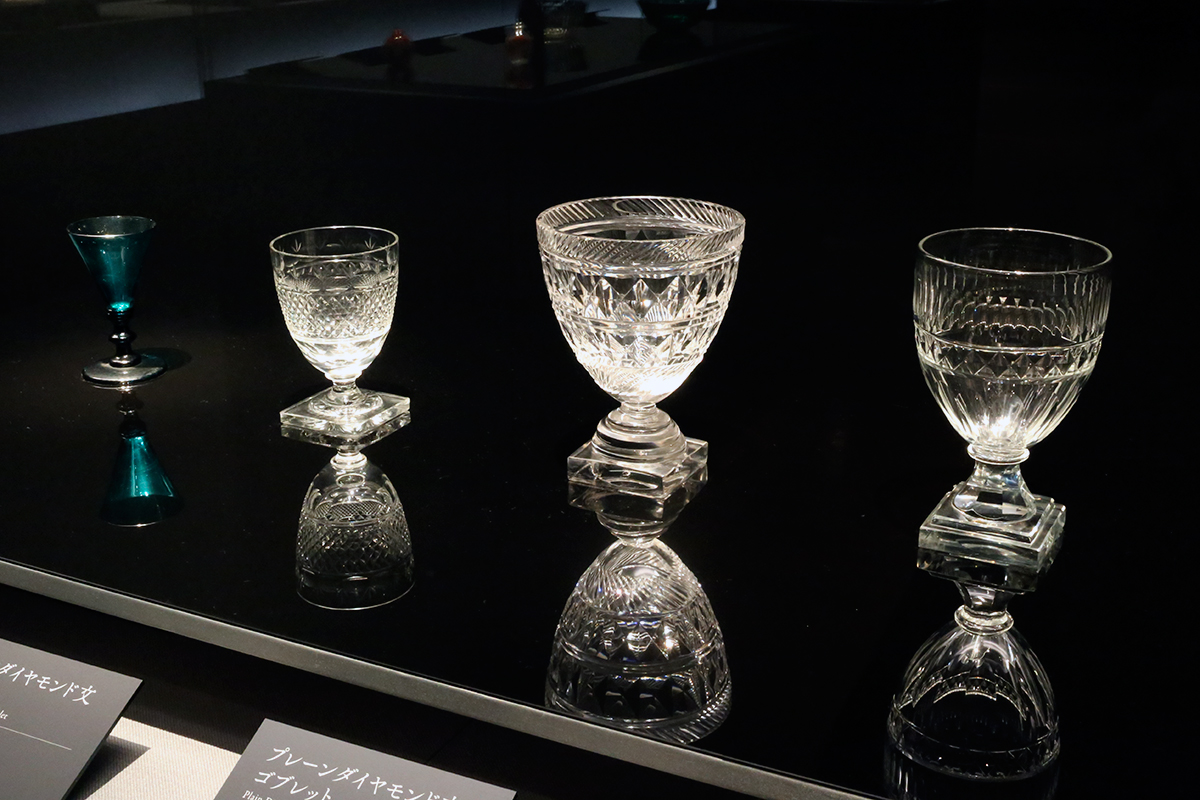 《緑色ゴブレット》ブリストル(イギリス) 1820年頃 / 《プレーンダイヤモンド文ゴブレット》イギリスあるいはアイルランド 19世紀前半 / 《プレーンダイヤモンド文ゴブレット》イギリスあるいはアイルランド 19世紀 / 《プレーンダイヤモンド文ゴブレット》イギリスあるいはアイルランド 19世紀前半