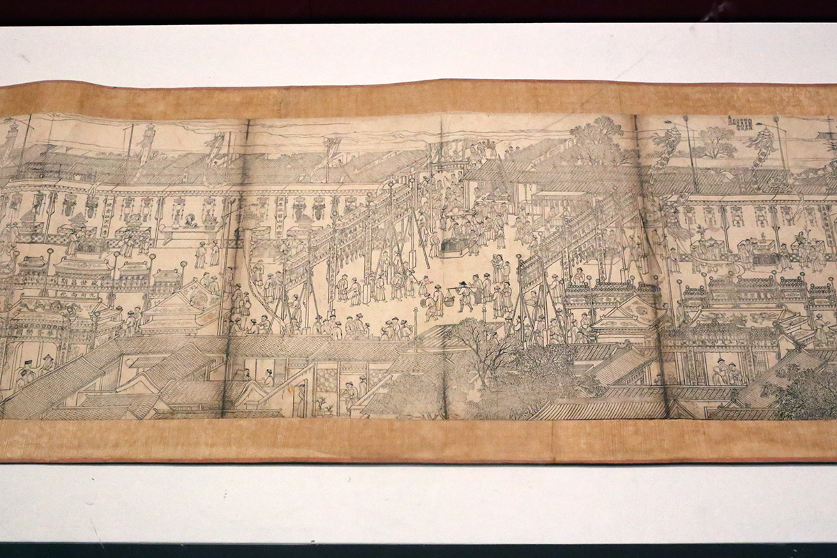 1790年に北京で行われた乾隆帝80歳の式典を描いた《乾隆八旬万寿慶典図巻》は、中国国外で展示されるのは初めて。沿道にはさまざまな飾り物もあり、活気あふれる街の様子が伺えます。